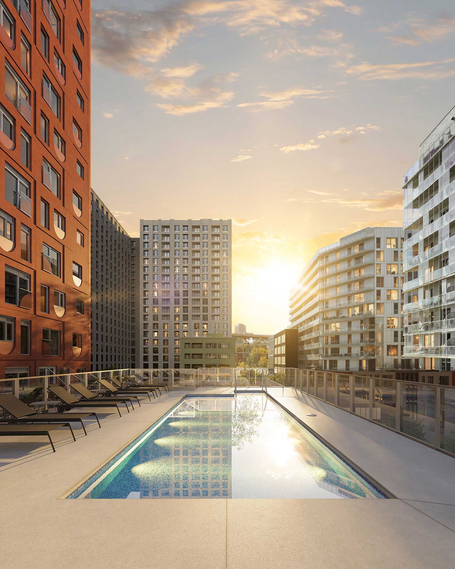 Découvrez nos aires communes pensées pour votre mieux-être : un centre sportif complet, un espace de télétravail fonctionnel et un toit-terrasse offrant une vue imprenable sur les couchers de soleil montréalais. Tout est là pour recevoir vos proches, vous divertir ou simplement vous détendre.