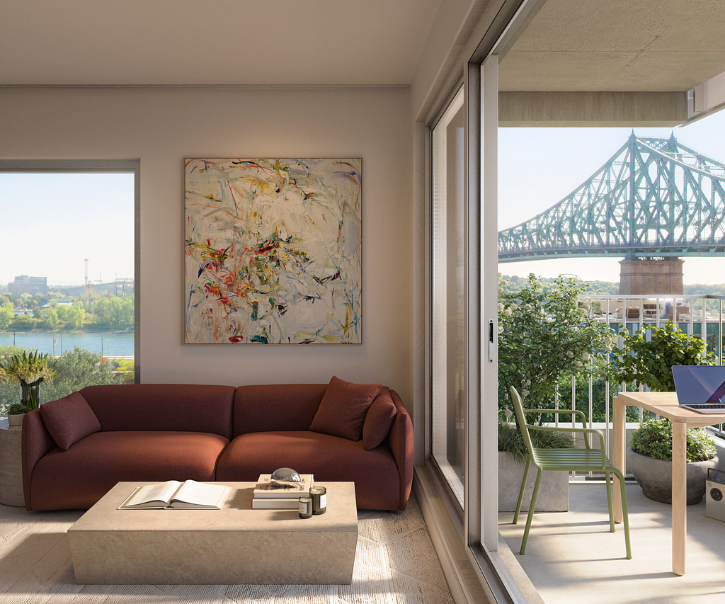 D’un point de vue esthétique aussi, certains détails se veulent un clin d’œil aux classiques de l’architecture de Montréal, comme les escaliers en colimaçon permettant d’accéder à certaines unités, l’aménagement pensé pour laisser voir le pont Jacques Cartier, ou encore l’inspiration industrielle des façades qui rappelle le passé de la ville.